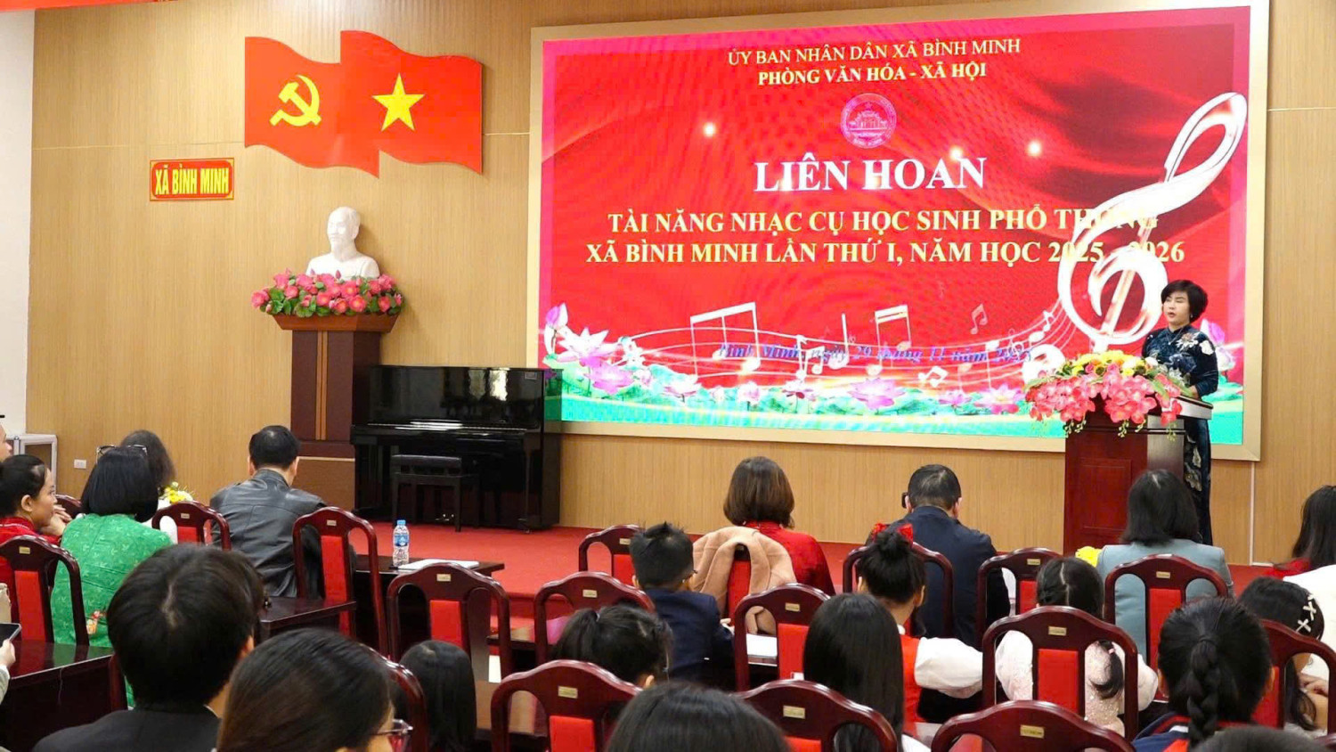 Sáng 29/11, tại Hội trường UBND xã Bình Minh, Liên hoan Tài năng Nhạc cụ học sinh phổ thông lần thứ nhất đã diễn ra sôi nổi, để lại nhiều ấn tượng đẹp. Dù là sân chơi lần đầu tổ chức ở quy mô cấp xã, nhưng chương trình được đánh giá có tính chuyên nghiệp, quy tụ 19 thí sinh đến từ nhiều trường học trên địa bàn. Dự Liên hoan có đồng chí Lê Văn Ân, Phó Bí thư Thường trực Đảng uỷ; đồng chí Nguyễn Đăng Việt, Phó Bí thư, Chủ tịch UBND xã; lãnh đạo các phòng, ban chuyên môn; Ban Giám hiệu các trường học cùng đông đảo phụ huynh và người yêu âm nhạc.