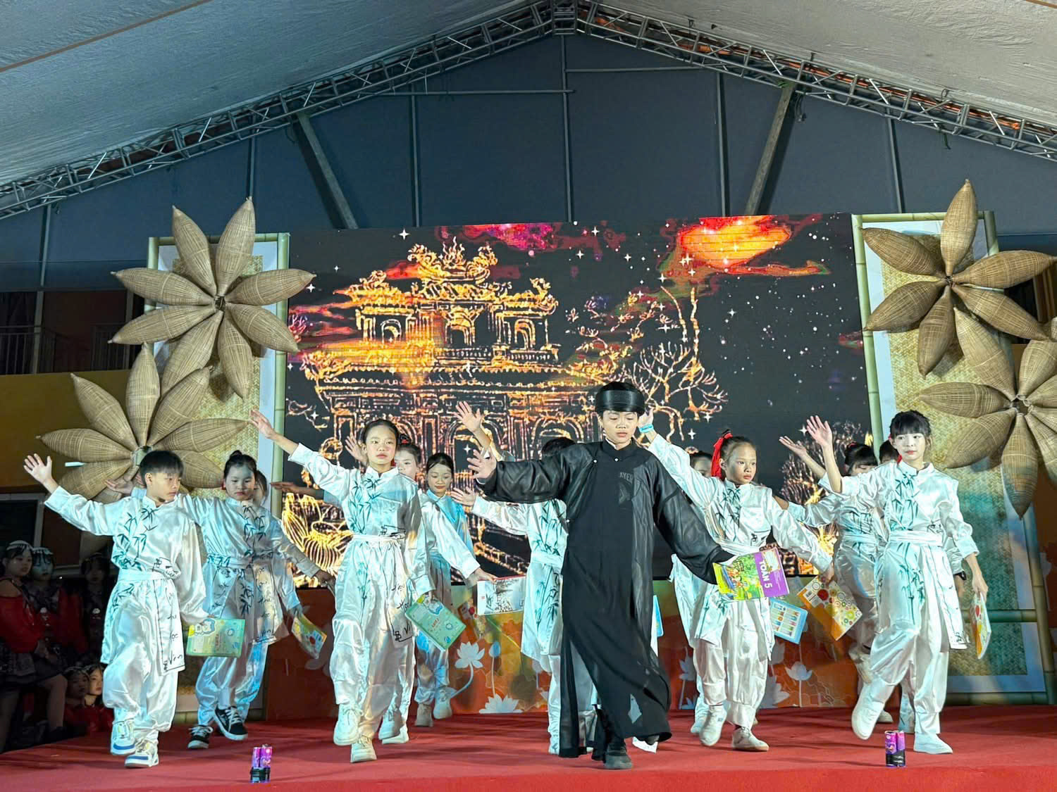 Tham gia chương trình, các em học sinh Trường Tiểu học Bình Minh A đã mang đến những tiết mục văn nghệ đặc sắc thể hiện sự tự tin, hồn nhiên và tài năng của tuổi thơ. Từ những điệu múa uyển chuyển, màn biểu diễn múa lân sôi động đến các tiết mục đồng diễn giàu ý nghĩa, tất cả đã góp phần tạo nên một bức tranh nghệ thuật rực rỡ, đầy sắc màu.