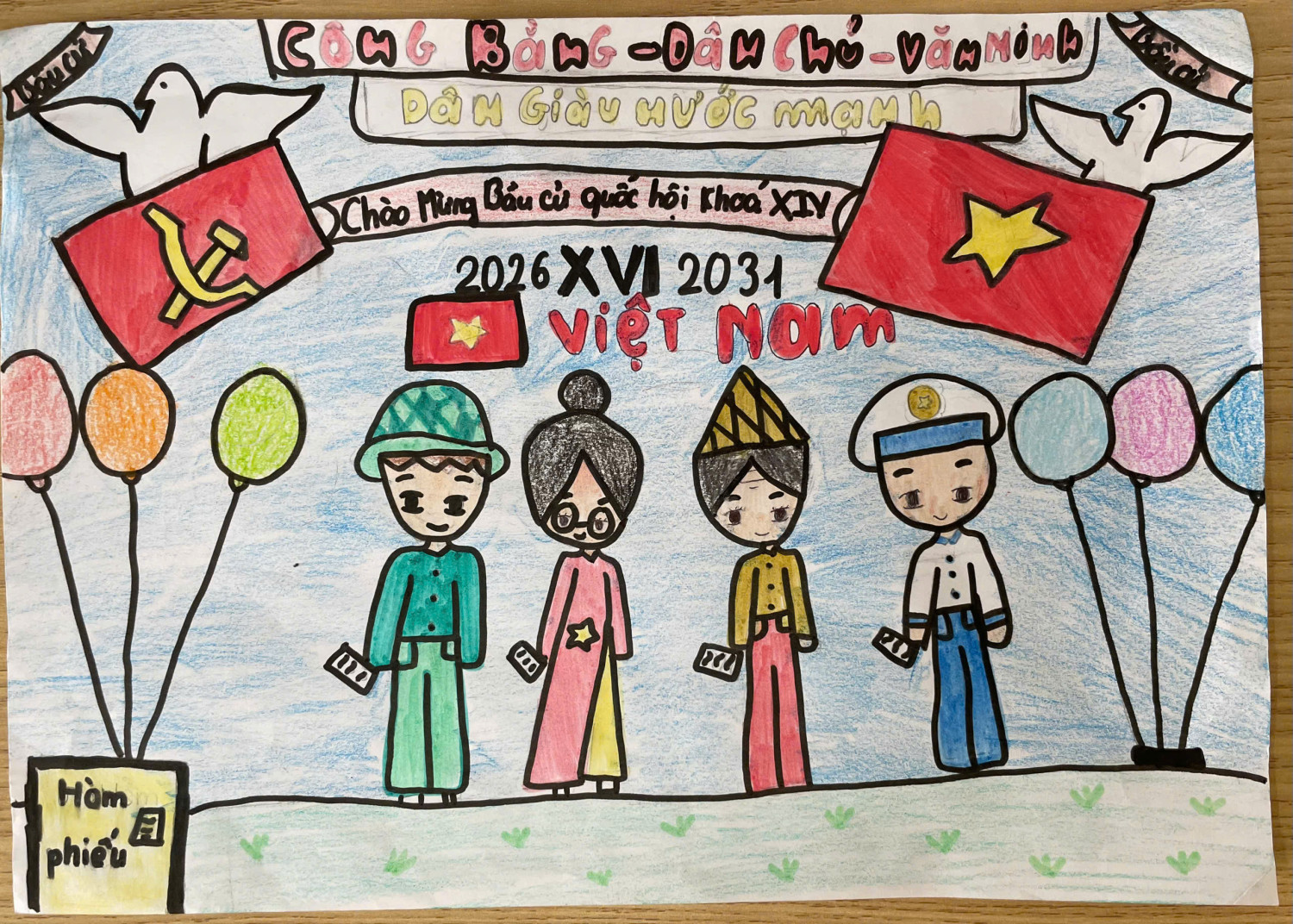 Học sinh nhà trường tích cực hưởng ứng thông qua hoạt động vẽ tranh, tìm hiểu về quyền và nghĩa vụ của công dân, các quy định của pháp luật về bầu cử và tiêu chuẩn đại biểu Hội đồng nhân dân.